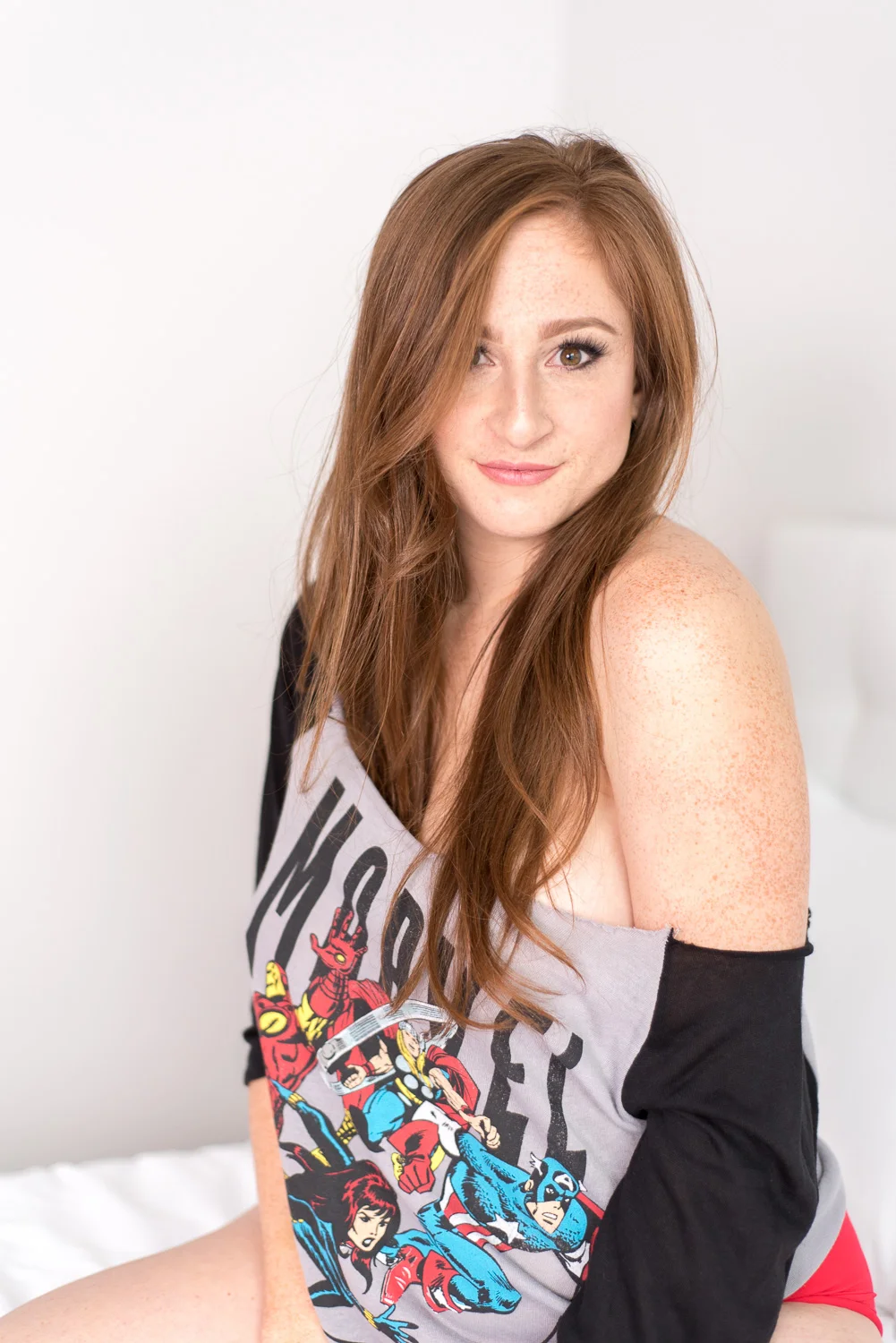 Miss H came to me wanting to surprise her husband with the ultimate gift on their first Valentine's Day as husband and wife. When she told me that she wanted to incorporate something to do with Ironman, my eyes lit up. Miss H held up a men's t-shirt she had picked up before her shoot and we went to work with a pair of scissors, laughing as I held the shirt and she cut the neck. I love the way everything turned out and Miss H got that perfectly undone and slouchy look she was going for.